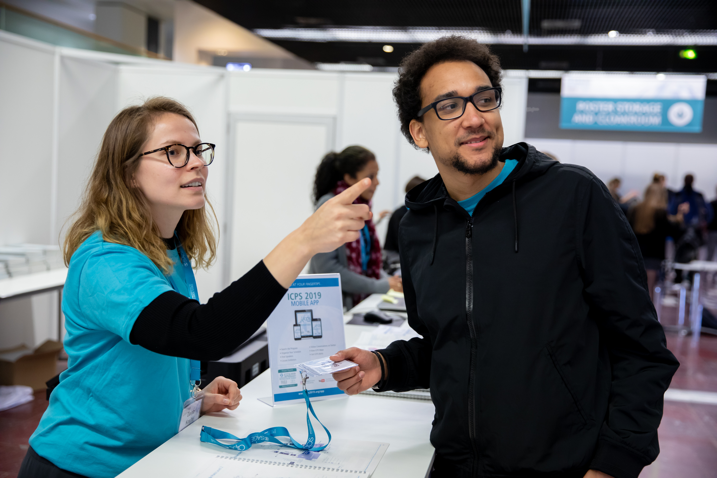 包括参加国际青年研究员计划的研究生在内的90多名志愿者帮助与会者注册、查找会议地点和定位他们的公告牌号码。